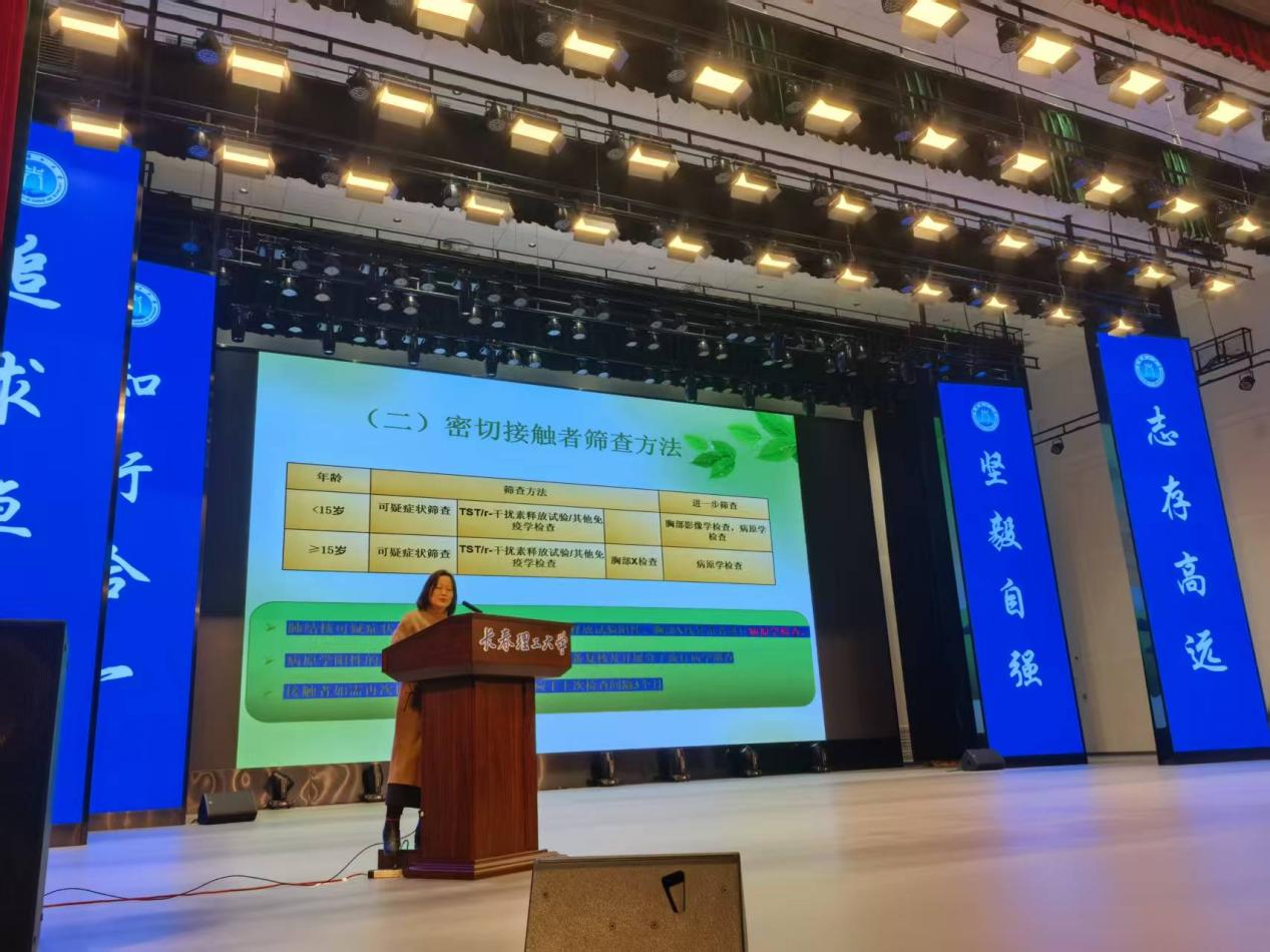 本次系列宣传活动特邀长春市朝阳区疾病预防控制中心(朝阳区卫生监督所)结防科科长王微担任主讲人,在朝阳校区东区报告厅、春明湖校区春明湖礼堂分别开展结核病防治专题科普讲座。讲座围绕结核病传播途径、典型症状、科学预防、规范治疗等核心内容展开,结合宿舍、教室等校园高频场景,重点讲解通风消毒、咳嗽礼仪、密切接触者筛查等实用防控要点,通过案例分析、图文演示的方式,针对性纠正 “结核病是不治之症”“结核病会遗传” 等常见认知误区,让科学防治知识真正入脑入心。